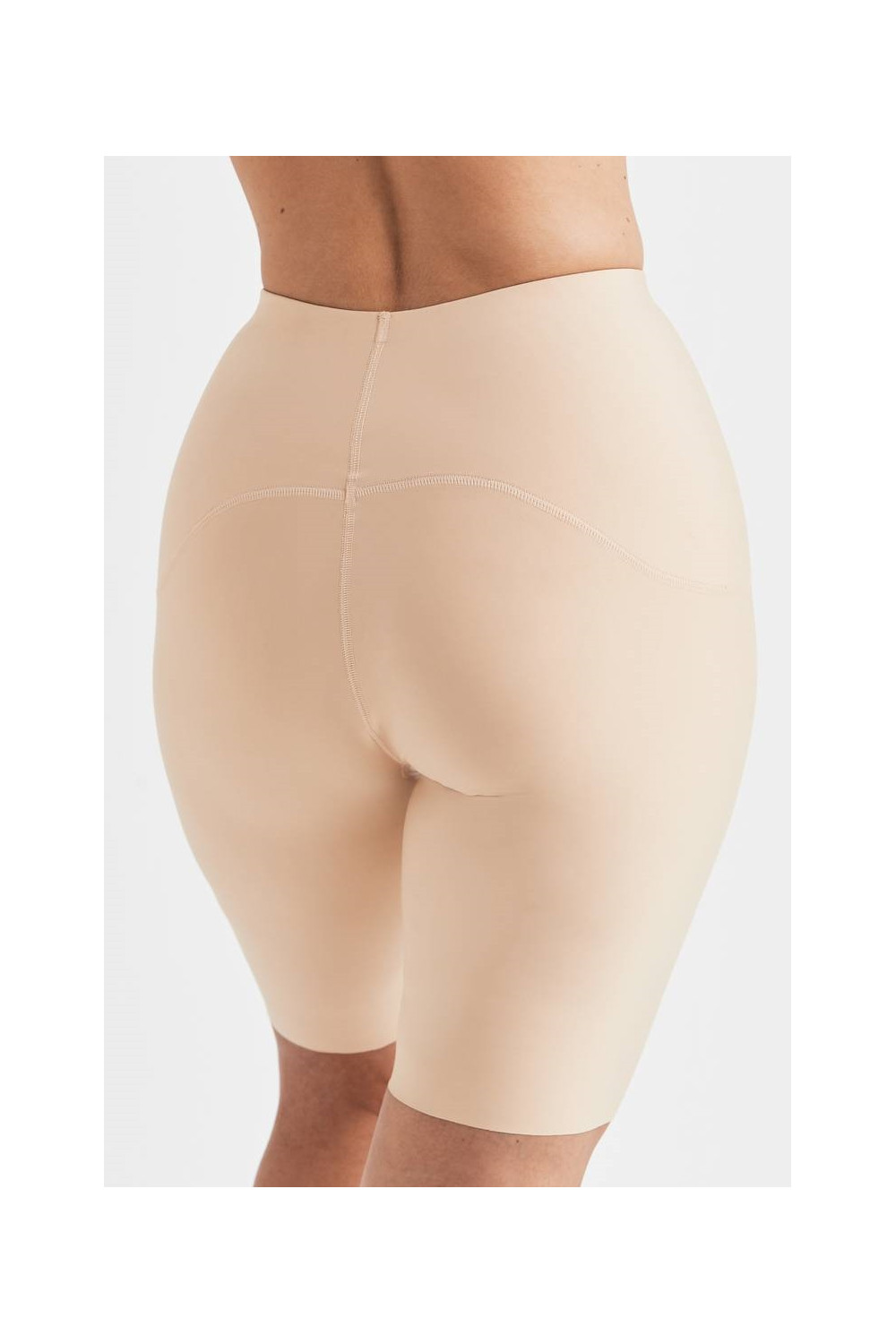 Τα μακριά πόδια είναι άνετα, αποτρέπουν την τριβή μεταξύ των μηρών και παραμένουν αόρατα κάτω από τα ρούχα. Το λαστέξ διαθέτει ραφή στο κέντρο της πίσω πλευράς και κατά μήκος του εσωτερικού των ποδιών, αλλά χωρίς πλαϊνές ραφές. Τα τελειώματα στα πόδια είναι κομμένα με λέιζερ για αόρατη μετάβαση μεταξύ υφάσματος και δέρματος.