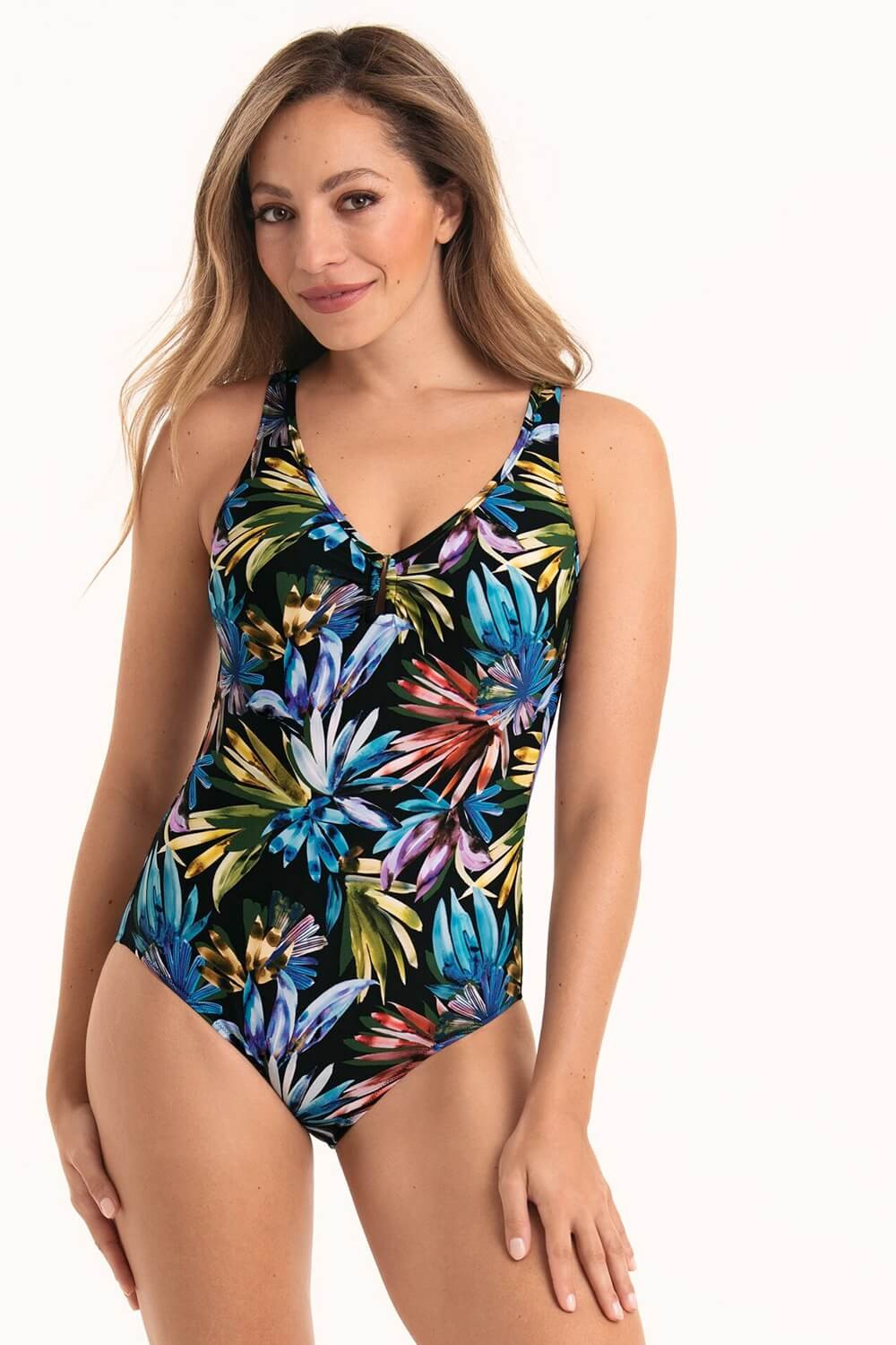 Ολόσωμο Μαγιό χωρίς μπανέλες με ντεκολτέ και σχέδιο φλοράλ
