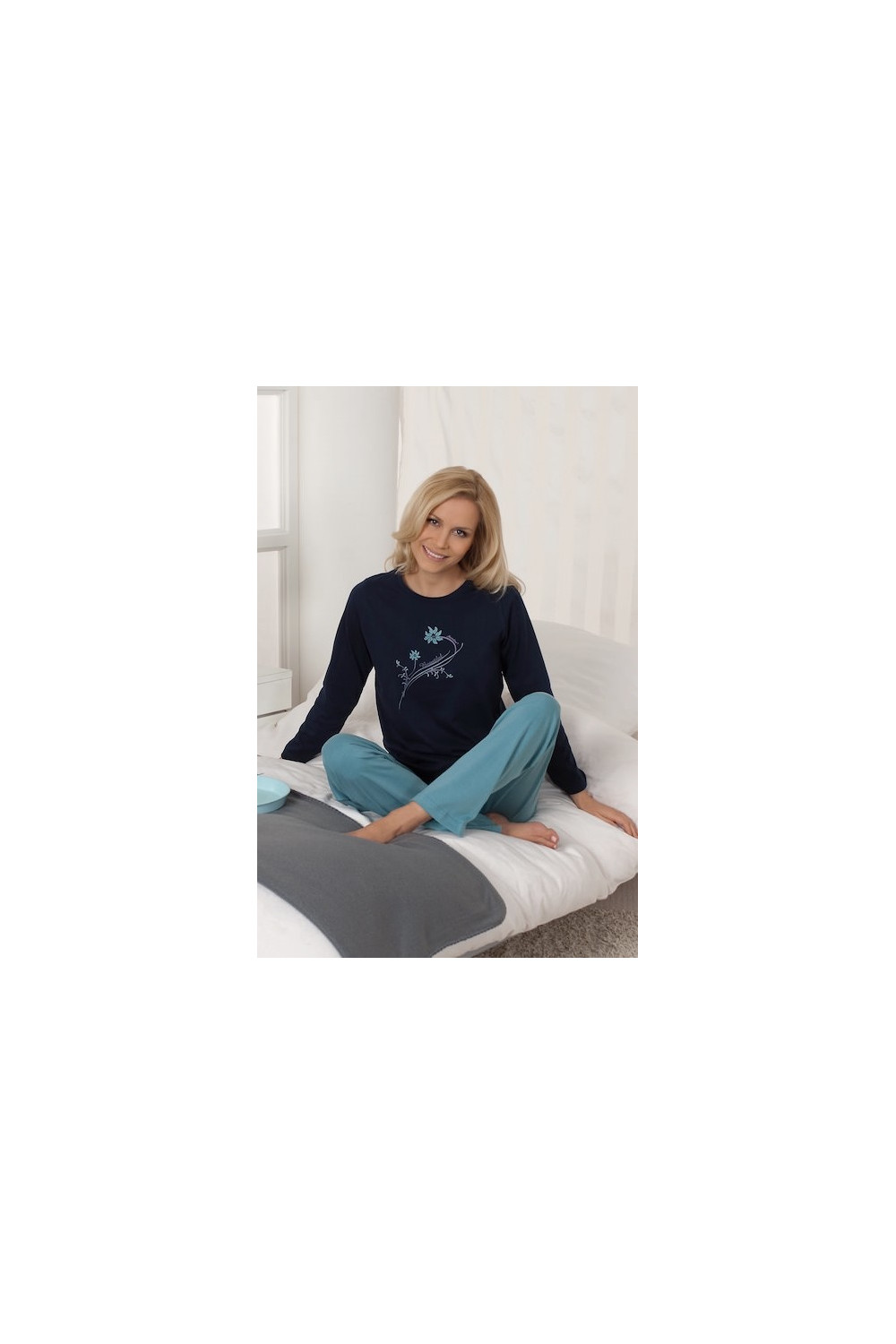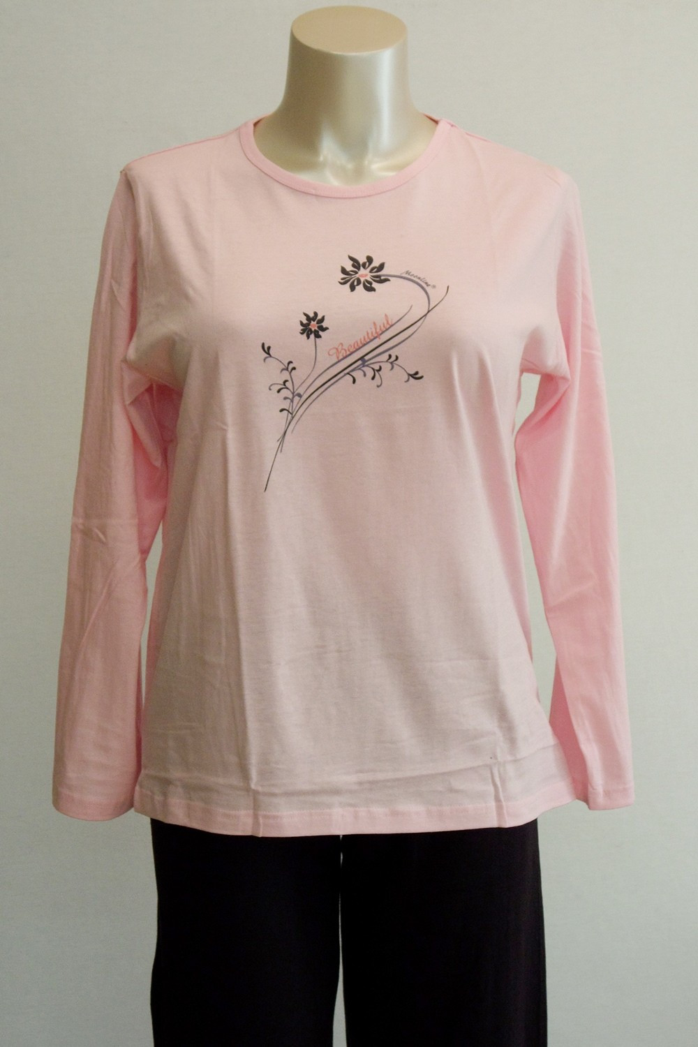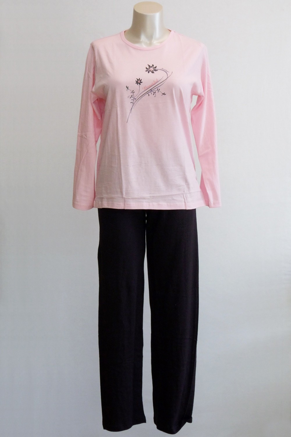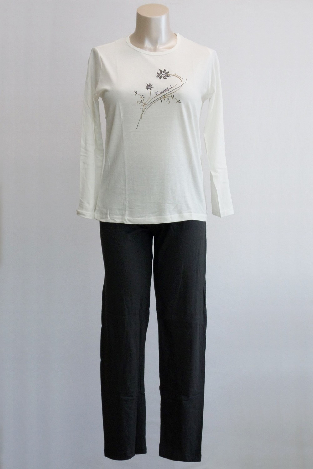Πρακτική, δίχρωμη, γυναικεία πυζάμα εισαγωγής με λαιμόκοψη και στάμπα εμπρός.