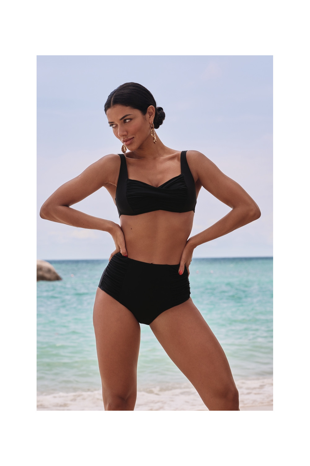 Άνετο σλιπ μαγιό ψηλόμεσο με σούρες στα πλαϊνά για να κολακεύει τη σιλουέτα