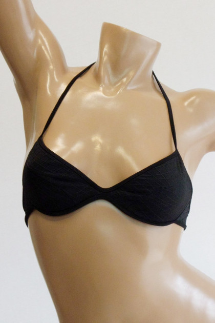Θηλυκό μπικίνι τοπ με μαλακές μπανέλες που συγκρατούν και χαρίζουν τέλειο ντεκολτέ. Φοδραρισμένες θήκες. Με λεπτή τιράντα που δένει πίσω στο λαιμό. Παρτό κόψιμο στους μηρούς. (90% Polyamide, 10% Elastane). Σε μικρά μεγέθη!